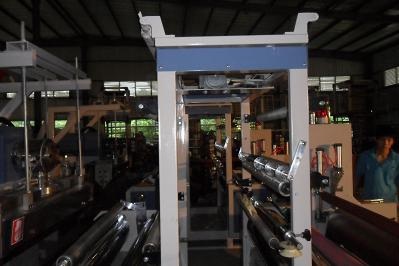 4、卷收臺(tái)裝置,可以前后移動(dòng),采用高級(jí)轉(zhuǎn)矩馬達(dá)配合四軸自動(dòng)張力控力,能隨意調(diào)整速度及薄膜寬度。